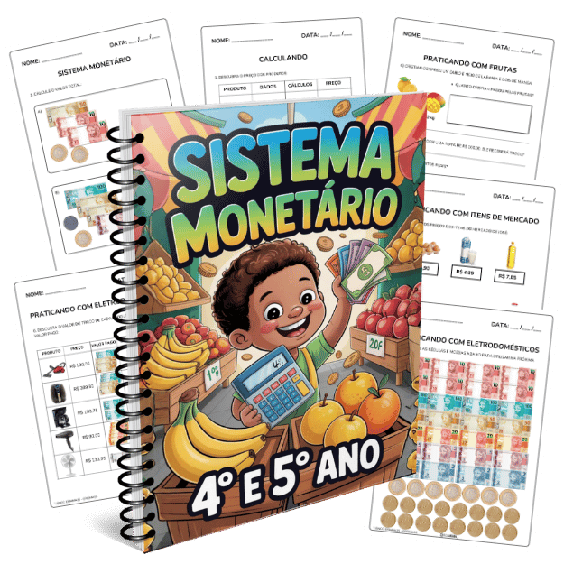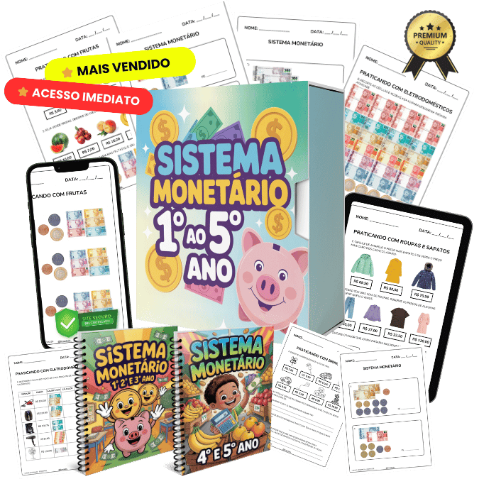 Material completo que aprofunda o uso do dinheiro no cotidiano, com atividades que envolvem cálculo de compras, troco, descontos, porcentagens e parcelamentos. Trabalha as quatro operações em situações reais, estimulando o raciocínio lógico e a educação financeira de forma prática e contextualizada.